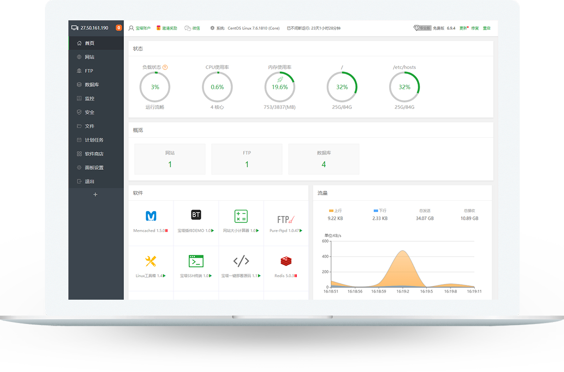 1. 云服務器推存使用寶塔面板一鍵部署服務器,快速穩定。